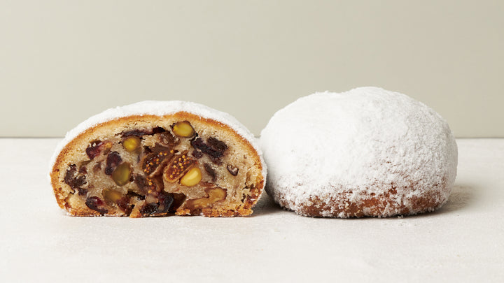 一方、発祥の地ドレスデンの鉱山にある坑道に似せたシュトーレン。粉糖をまぶして真っ白な見た目は、キリストのおくるみのような仕上がりです。
